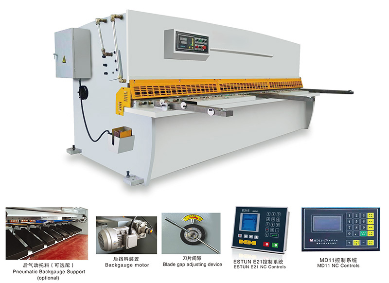 ●采用鋼板焊接結構,液壓傳動,氮氣缸回程: ●刀片間隙無級調整,方便快捷; ●上刀架以擺軸支點做弧形剪切,刀口間隙一致; ●后擋板滾珠絲桿傳動,自動定尺,剪切計數; ●適用不銹鋼裝潢、電控柜、門業等薄板加工行業。 ●采用鋼板焊接結構,液壓傳動,氮氣缸回程。 ●操作方便,性能可靠,外形美觀。 ●刃口間隙調整有指示牌指示,調整輕便迅速。 ●設有燈光對線照明裝置,并能無極調節上刀架的行程量。 ●工作區采柵欄式人身安全保護裝置。 ●后擋料尺寸由微型減速電機控制,低噪音,準確定位,達到滿意效果。